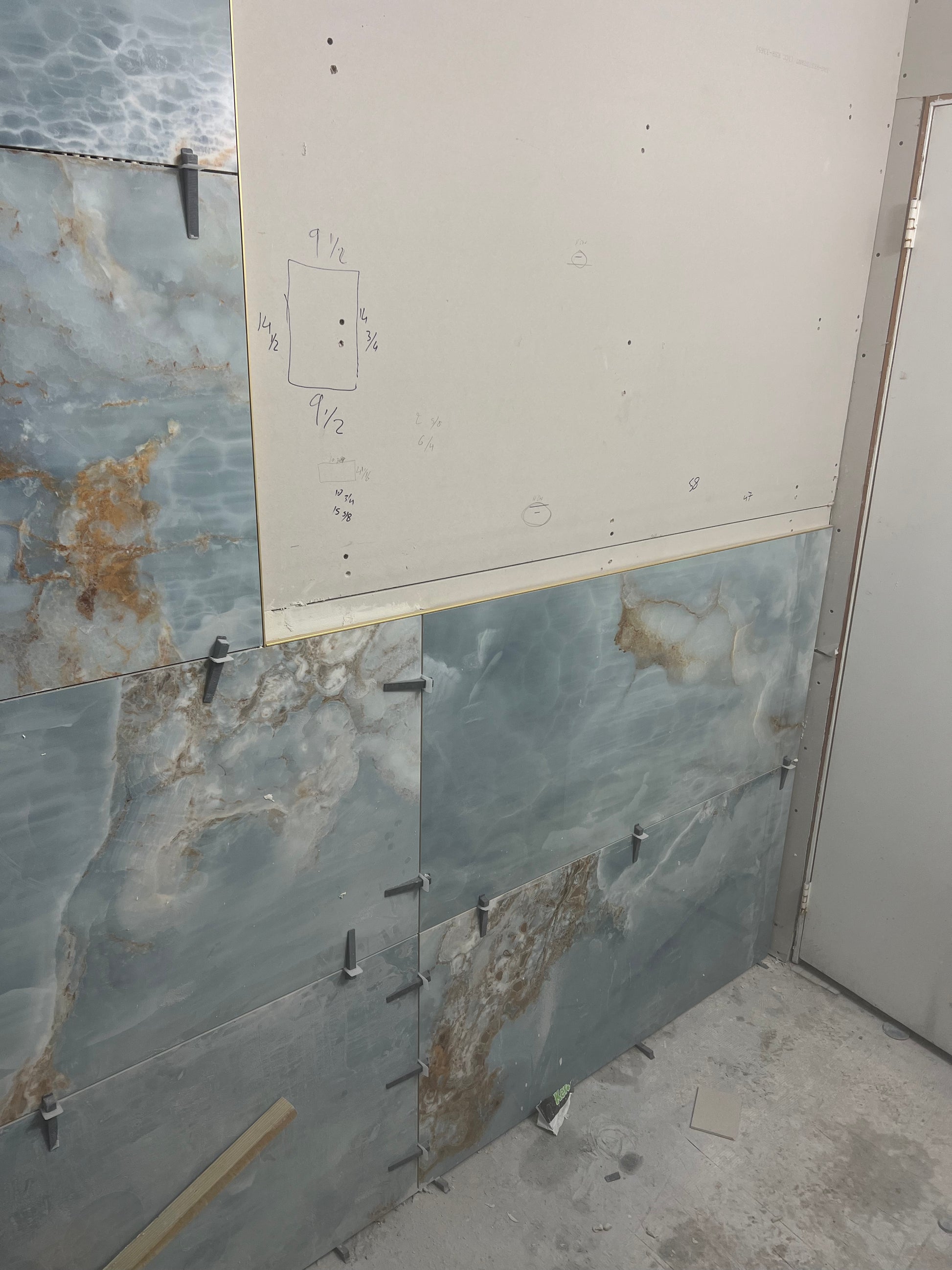 The design centered around a bold yet elegant palette: deep blue tiles were carefully selected to create a sleek, contemporary atmosphere while adding depth and personality to the room. These tiles were laid with meticulous attention to symmetry and spacing, becoming the visual anchor of the entire space.